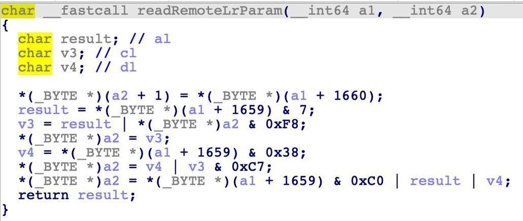 在 readRemoteLrParam 函数中,会将刚刚设置的 m_RemoteLrParam 和 nFrmCnt 读取到栈上变量v92中。