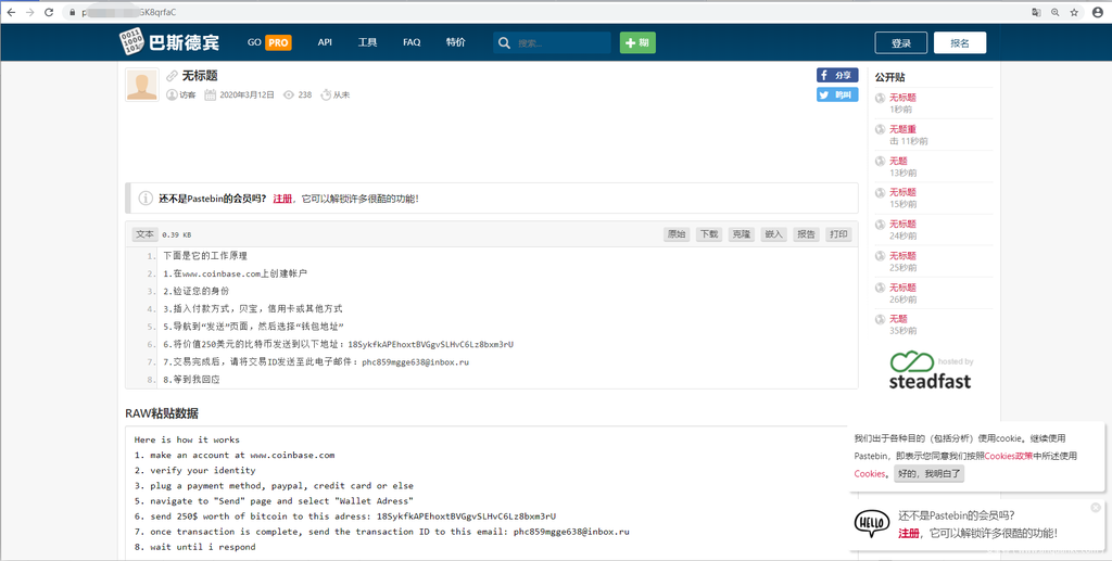 该操作文档中显示了威胁者的比特币地址及邮箱: