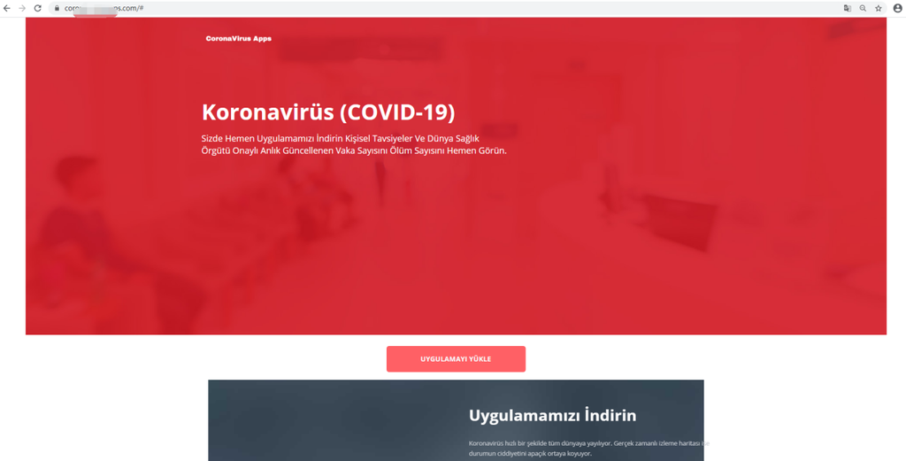其中域名为coron****sapps.com的网站使用土耳其语分发恶意程序,他们谎称该应用程序能即时更新病例数,用户可以通过该程序提供的实时监控图清楚地了解疫情的严重性。