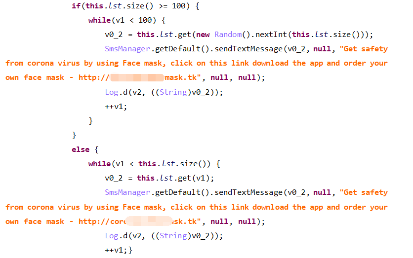 应用收集了所有联系人后,它将通过下载链接向所有联系人发送SMS消息,以将自身传播给更多用户。