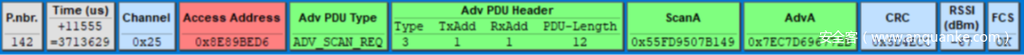再比如 Active scanning 因 SCAN_RSP PDU 返回扫描结果如下: