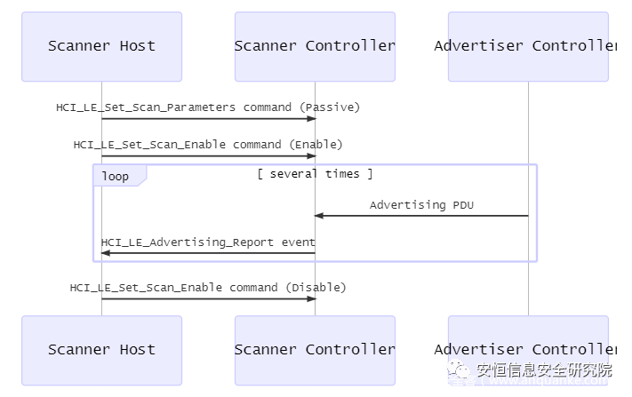 对于 passive scanning,它仅在 LL 上安静地接收空中飘过的各种 advertising PDUs,绝不会主动发送其他数据。因此 passive scanning 很隐蔽,不会暴露 scanner 的任何信息。