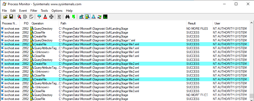 2、整个过程结束时,服务会删除C:\ProgramData\[…]\SoftLandingStage中创建的file1.xml文件。