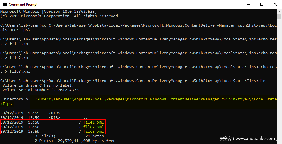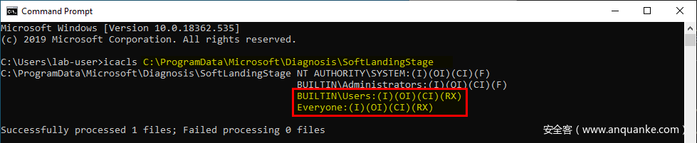 因此,当服务打开C:\Users\lab-user\AppData\[…]\Tips\file2.xml时,实际上打开的是secret.txt,然后会将其内容拷贝到C:\ProgramData\[…]\SoftLandingStage\file2.xml。