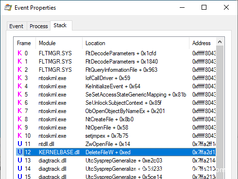上图中,CreateFile操作源自于diagtrack.dll中的DeleteFileW()调用: