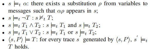 定义了t和|=两种关系。 前者存在于跟踪项和动作项之间,后者存在于配置项和动作项之间。 它们的归纳定义如下 而s指的是痕迹):