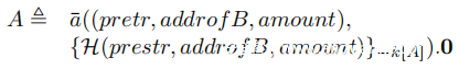 为了定义此属性,说如果可以将有效交易成功添加到区块链,则其对应的跟踪必须以Append(x).0结尾。同时,如果跟踪以Append(x).0结尾,则先前的操作必须包括一个发出事务的操作。如前所述,可以将保密属性建模为操作项,因此保密属性定义如下。