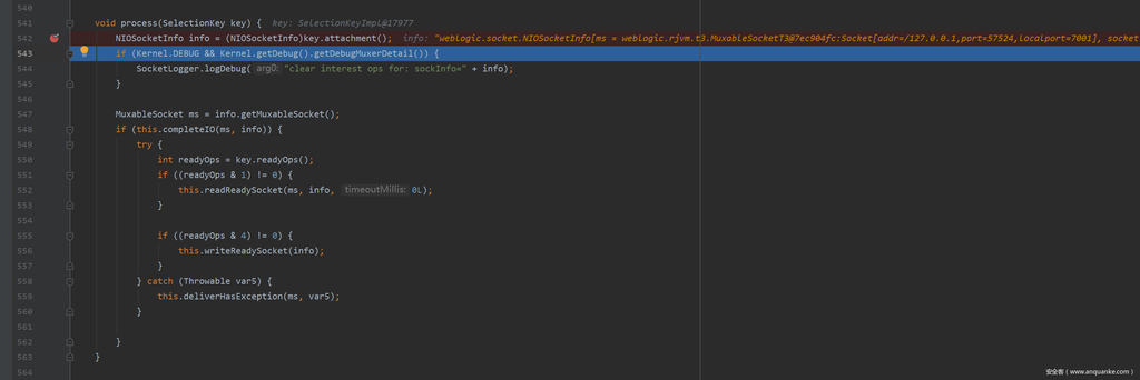 这里主要是通过Nio去处理请求,写入请求等,与漏洞分析的关系不太大。在这里将会根据请求,调用相应的协议处理请求,例如T3,http等