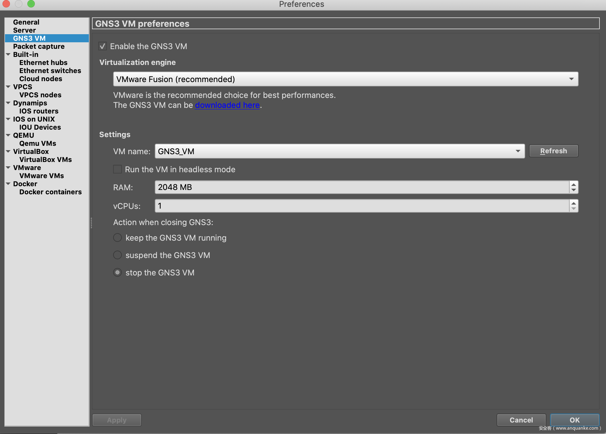 1.首先设置好GNS3 VM