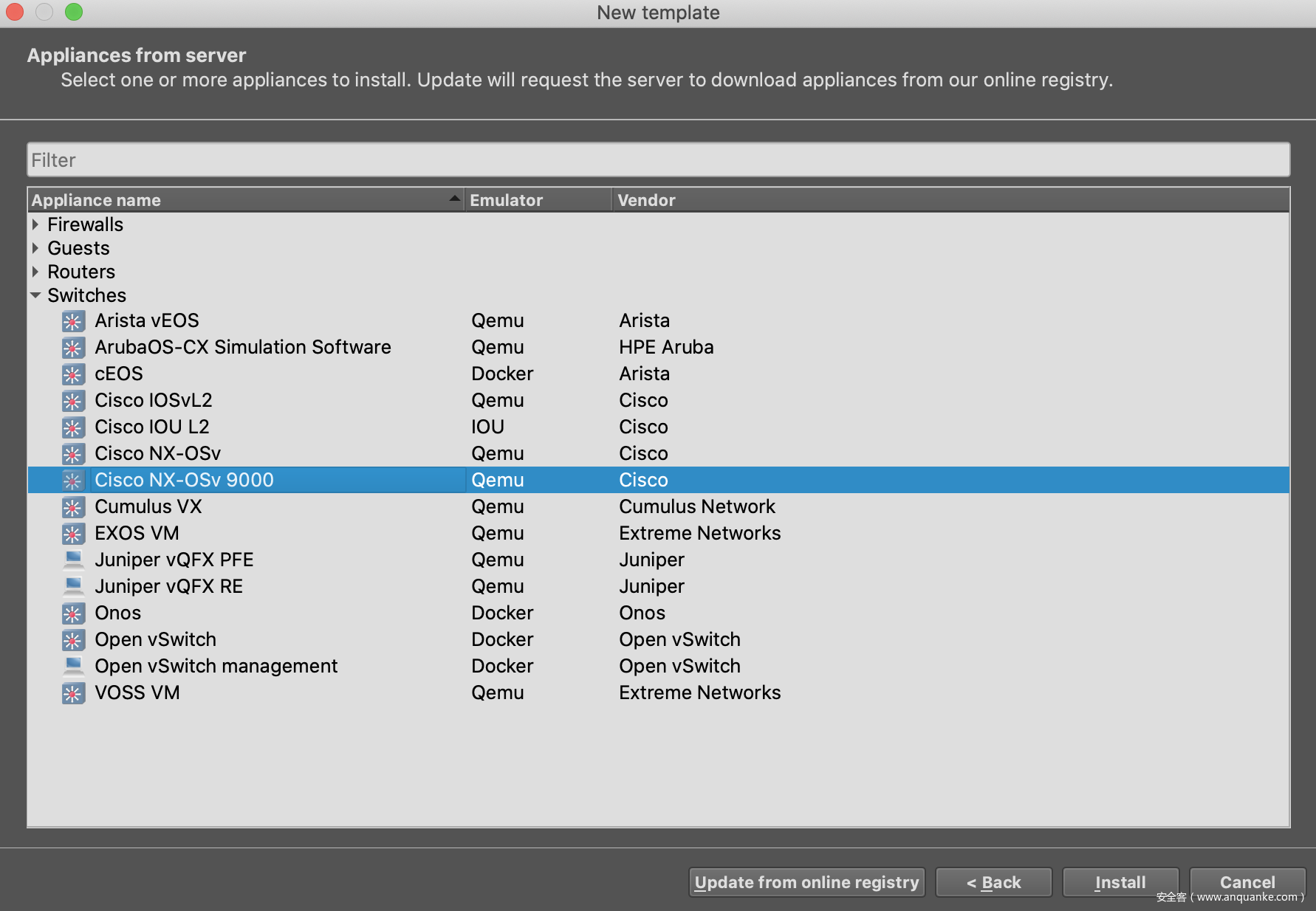 3.选择交换机 Cisco NX-OSv 9000