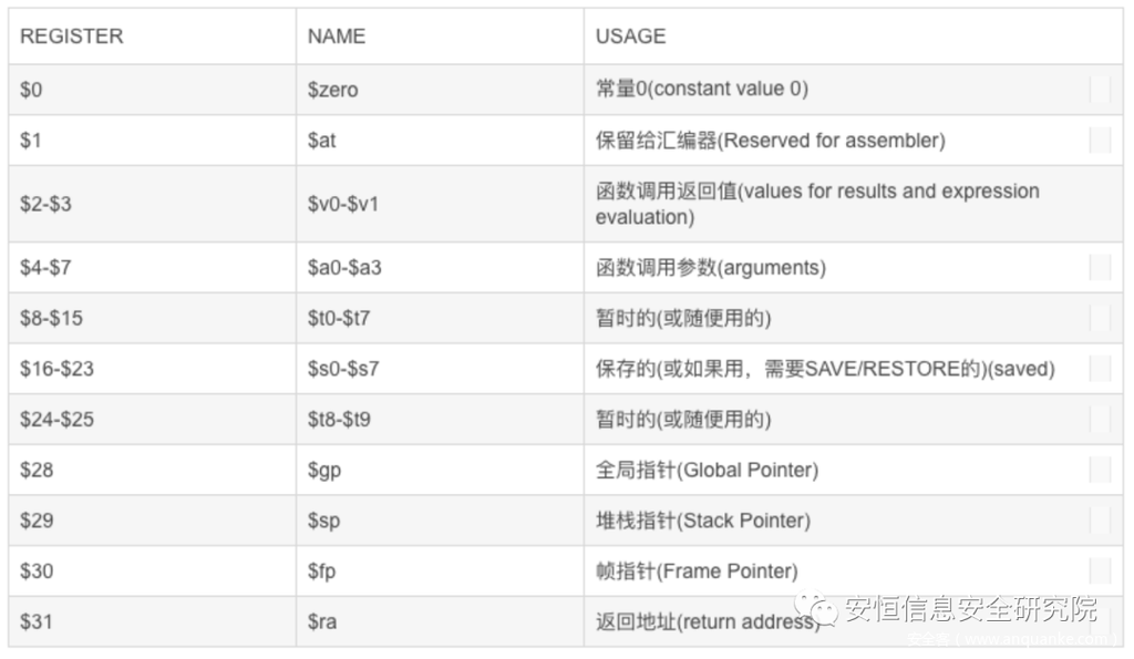 为了了解MIPS下栈溢出的利用,首先得对MIPS的传参约定有一个基本的了解。
