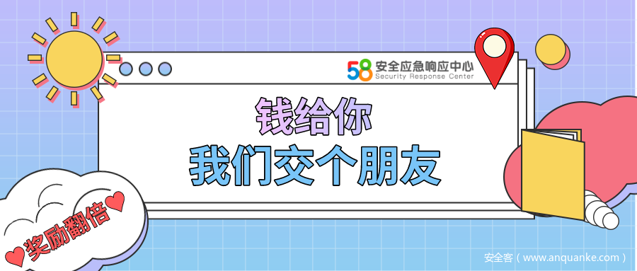 58一直致力于广大用户的信息安全,58安全应急响应中心(Security Response Center)希望广大用户通过此平台与白帽子建立友好关系,共同建立诚信,安全,可靠的服务平台。非常希望各位白帽英雄多多向我们反馈58集团及关联公司产品的漏洞和威胁情报,以帮助我们提升产品及业务的安全性。