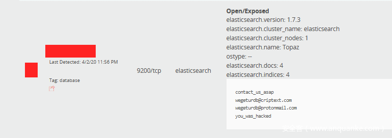 仅2017年,就曾有数千台Elasticsearch服务器的数据被非法删除,而攻击者会留下了赎金信息,要求目标用户或数据的所有者支付赎金请求以恢复数据。但悲催的是,这些受害者并不知道攻击者从未对被非法删除的数据进行过备份,因为这些被盗数据是直接被攻击者删除的。