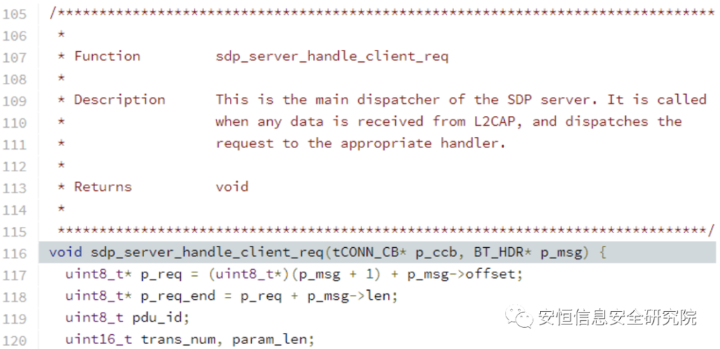 Android 实现的 SDP server 在处理 request PDU 时会进入 sdp_server_handle_client_req():
