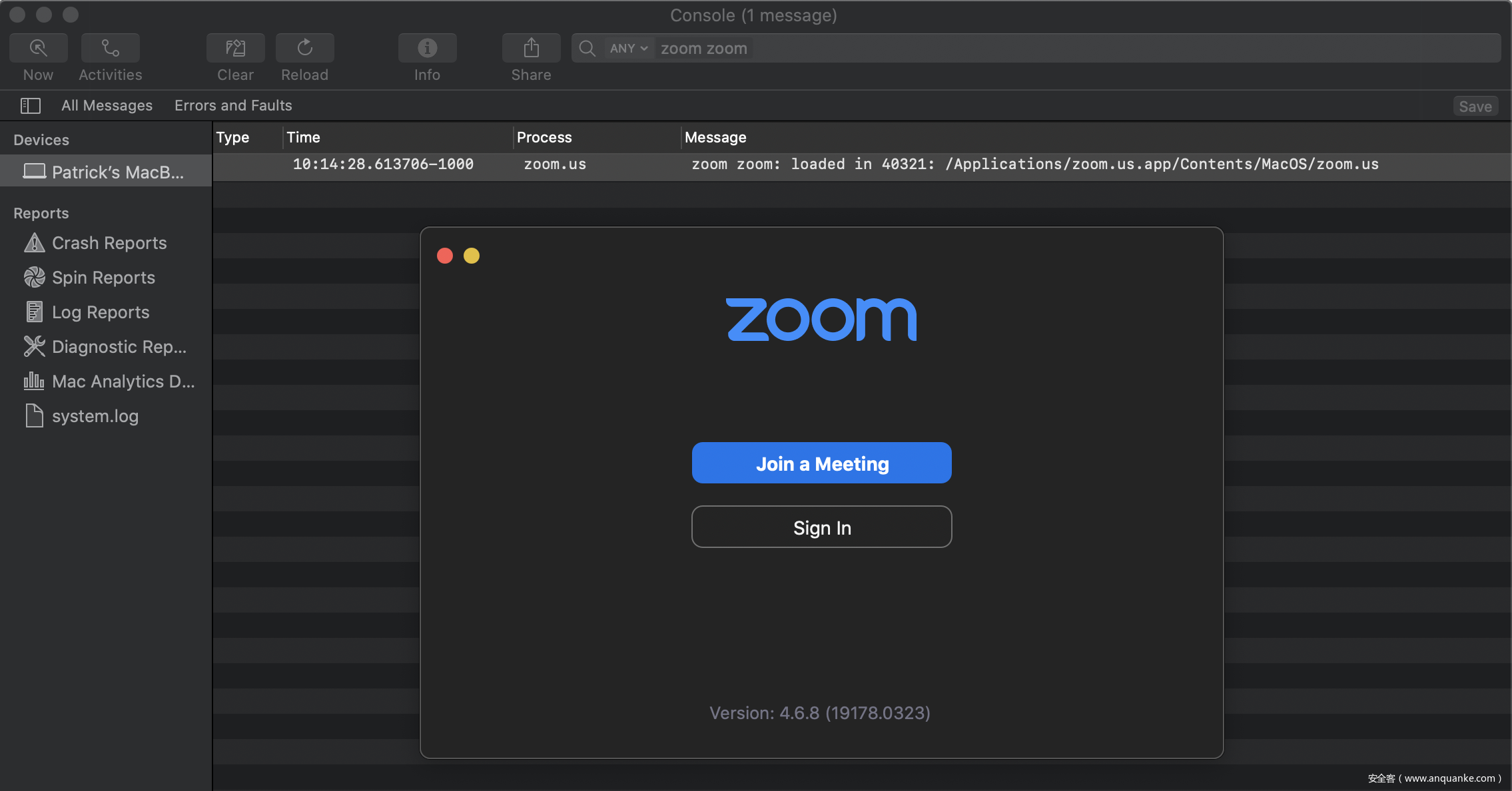 但紧接着Zoom就闪退掉了,这是因为我们的libssl.1.0.0.dylib不是一个ssl库,提供不了任何程序需要的功能,所以Zoom无法启动。