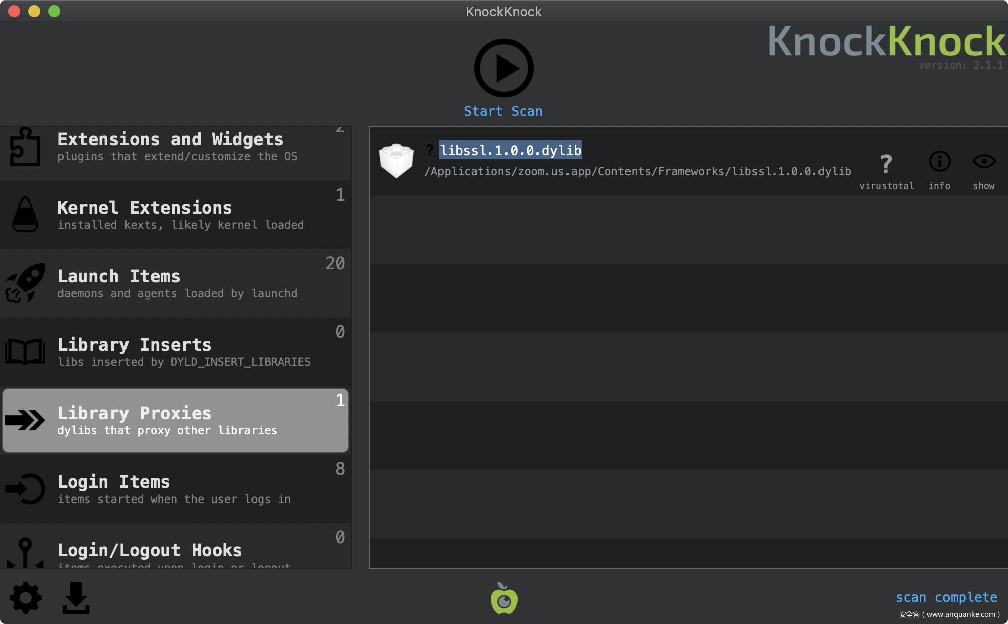 另一个(免费)工具是 KnockKnock,可以检测代理库: