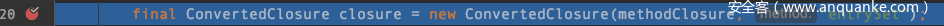 该方法代码过多先截取关键代码,首先创建一个Method类型的变量并为其赋值,然后我们通过判断传入的Object是否是Closure的子类,由截图可以看出Object里存储的是一个MethodClosure对象,所以判断的结果是true 接下来就走第一条判断成功执行的代码。