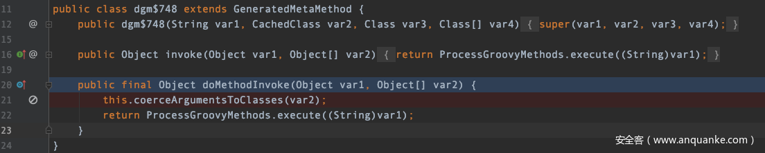 我们来看ysoserial Groovy1所执行的全部代码。我们可以看到在第34行代码以前,执行的代码和我们之前看到的简化版的代码执行Demo是一样的。