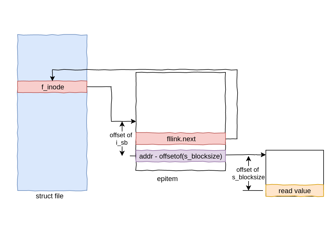 2、我们已经修改了结构文件的f_inode,该文件现在指向epitem的中间。为解决这个问题,最简单的方法是增加该文件的引用计数,以导致永远不会要求调用释放。