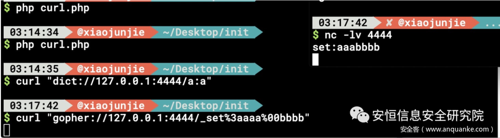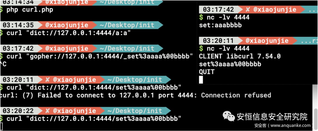 通过nc 对比gopher和dict协议后发现,dict会自动加上quit命令 XD