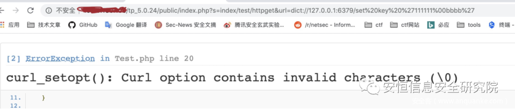 于是成功让gopher有回显,url=gopher://127.0.0.1:6379/_set key aa%253abbcc%250d%250aquit如下图所示: