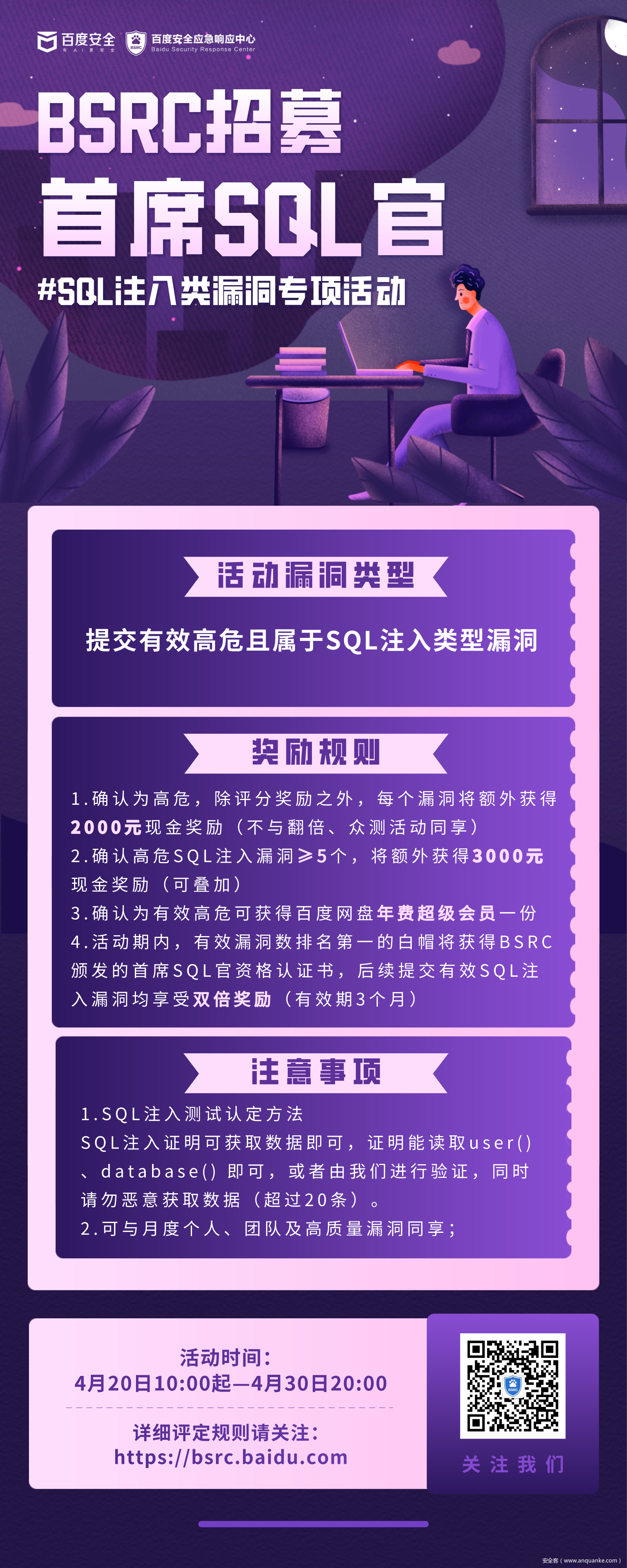 SQL注入类漏洞专项活动,每个漏洞额外奖励2000元!