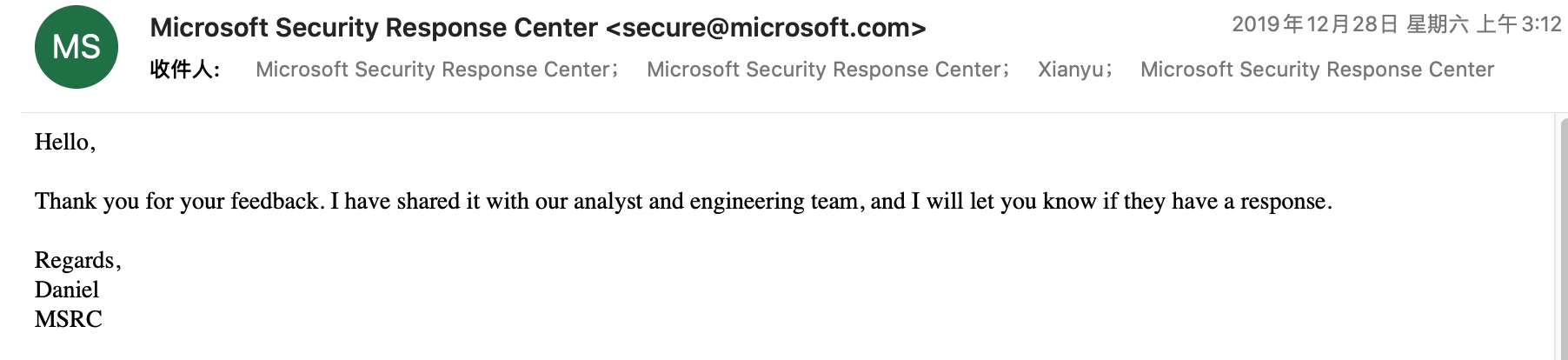 2019年12月28日 MSRC 回信会处理,至今没有回信