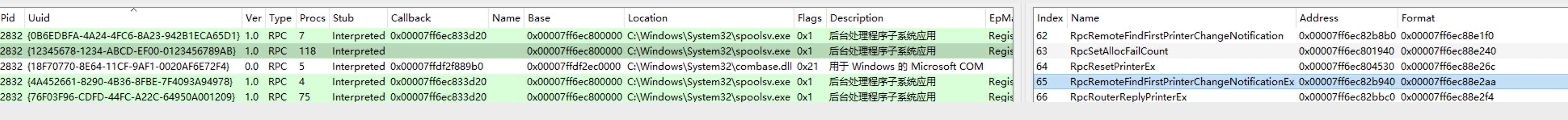 spoolsv.exe 进程会注册一个 rpc 服务,任何授权用户可以访问他,RPC 服务里面存在一个函数 RpcRemoteFindFirstPrinterChangeNotificationEx