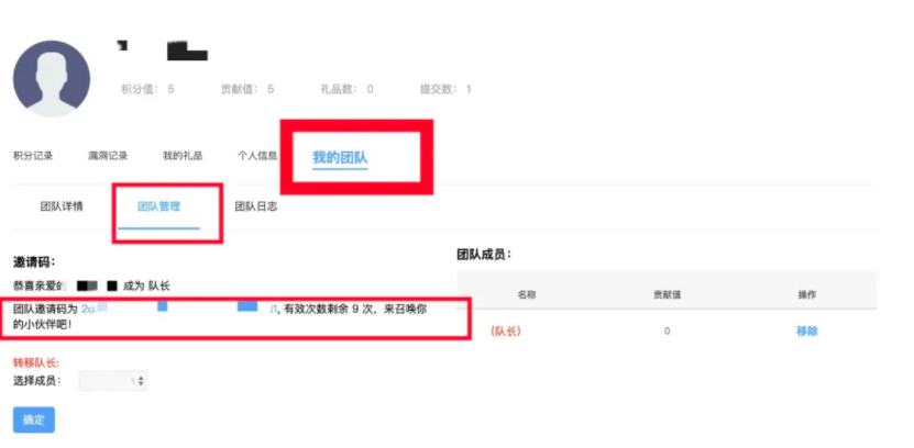 step3:审核通过后,在团队管理页面中,查询邀请码,发送邀请码给兄弟们吧!(每个团队5-10人,每个邀请码有效期9次,不要浪费哦!)