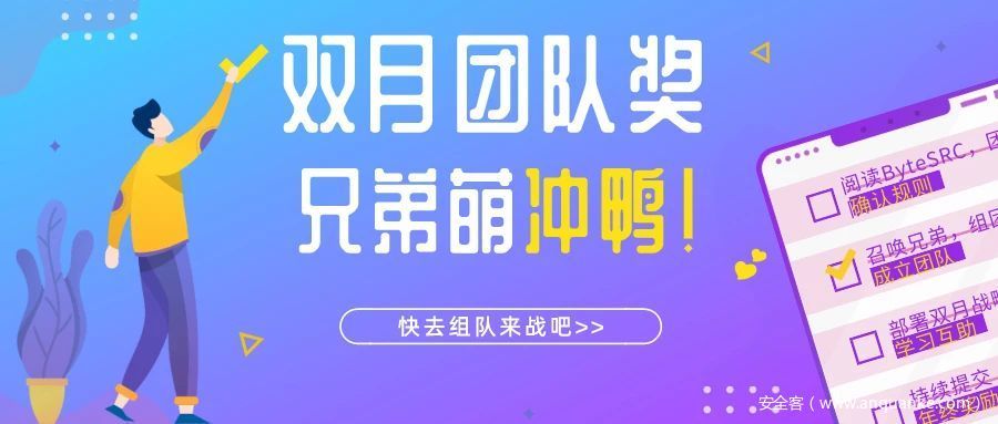 5月起,ByteSRC双月团队奖正式启动!承包你的“朋友”+“兴趣”+“奖金”,呼唤兄弟一起做些有趣的事儿~每个双月,团队最高额外奖金60000元!