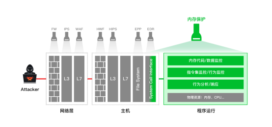 姜向前表示,传统的安全防护产品基于规则可以检测并阻断已知攻击,但无法阻止更强的攻击者利用漏洞更改或绕过安全规则攻击业务服务器或数据库服务器的行为,内存保护却可以实现对高级威胁的实时防护。内存保护系统通俗来说就是内存防火墙,在现有安全产品应对新挑战越来越吃力时,内存防火墙是强有力的补充,帮助企事业单位建立纵深防御体系的最后一道防线。