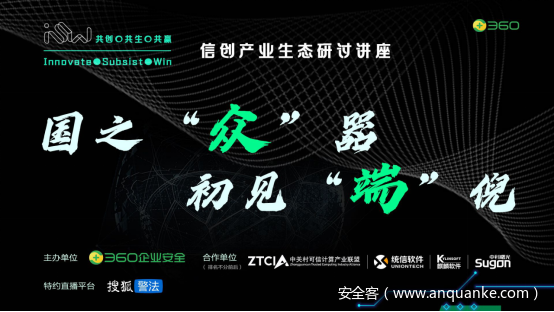 信息技术应用创新已经成为国家信息化建设中,涉及国家安全与产业自主发展的基石和保障,构建信创领域“命运共同体”正在成为新趋势。6月1日,360企业安全联合中关村可信计算机产业联盟、麒麟软件、中科曙光、统信软件共同聚焦信创产业生态,举办了一场线上研讨会,五位资深网络安全行业专家集结于此,围绕“终端安全生态产品”专题,全方位探讨终端安全“云管端”的防御体系解决方案。