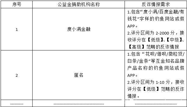 当前《反诈公益金捐助企业名单及反诈情报需求》节选: