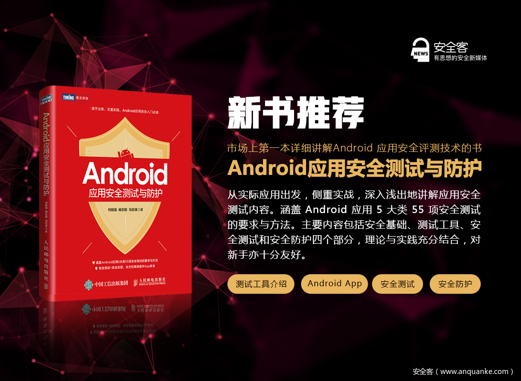 这次安全客免费为大家提供了5本《Android应用安全测试与防护》!有以下两种获取方式,大家自取哦~