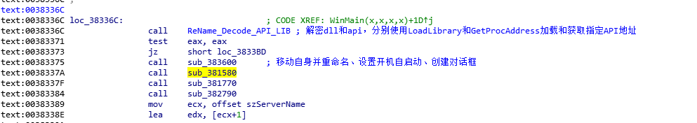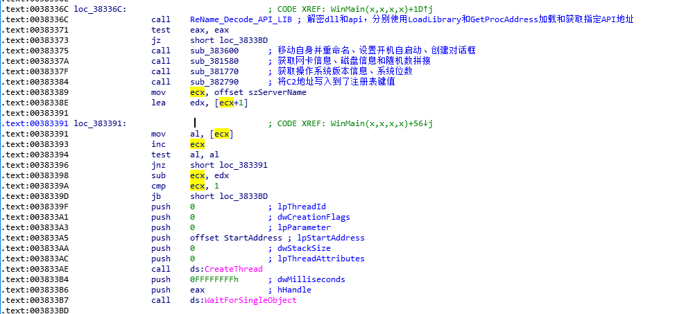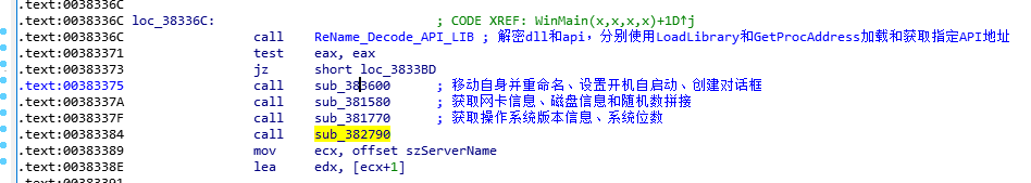 于是sub_382790的功能我们也搞清楚了,我们回到WinMain中对其进行标注。