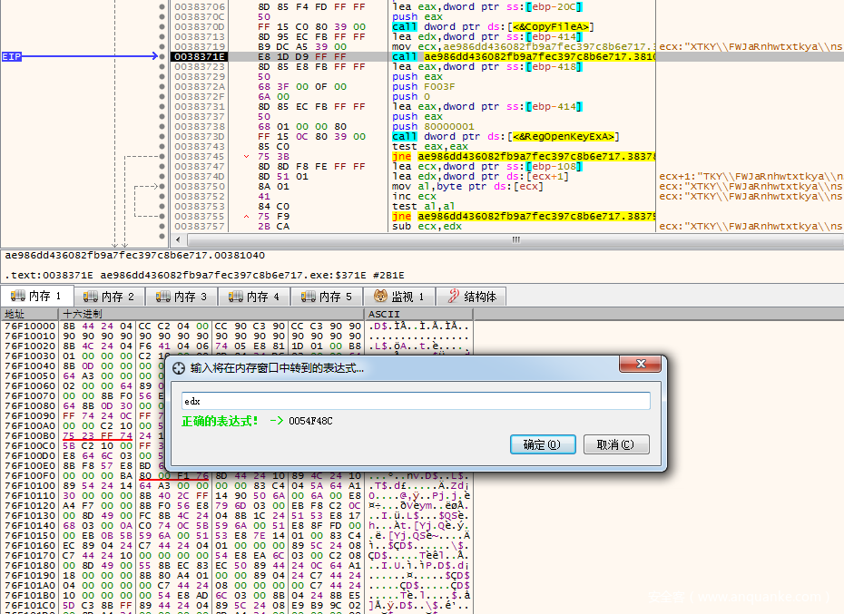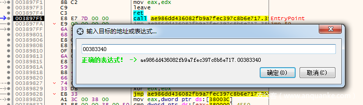 我们可以胆子大点,直接在调试器中CTRL+G跳转到00381AA0的首地址(就是00381AA0)