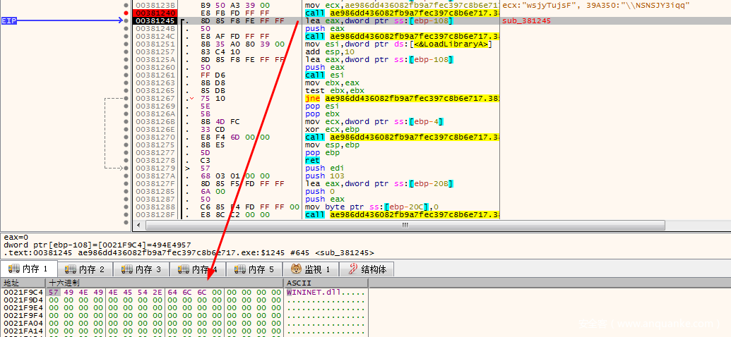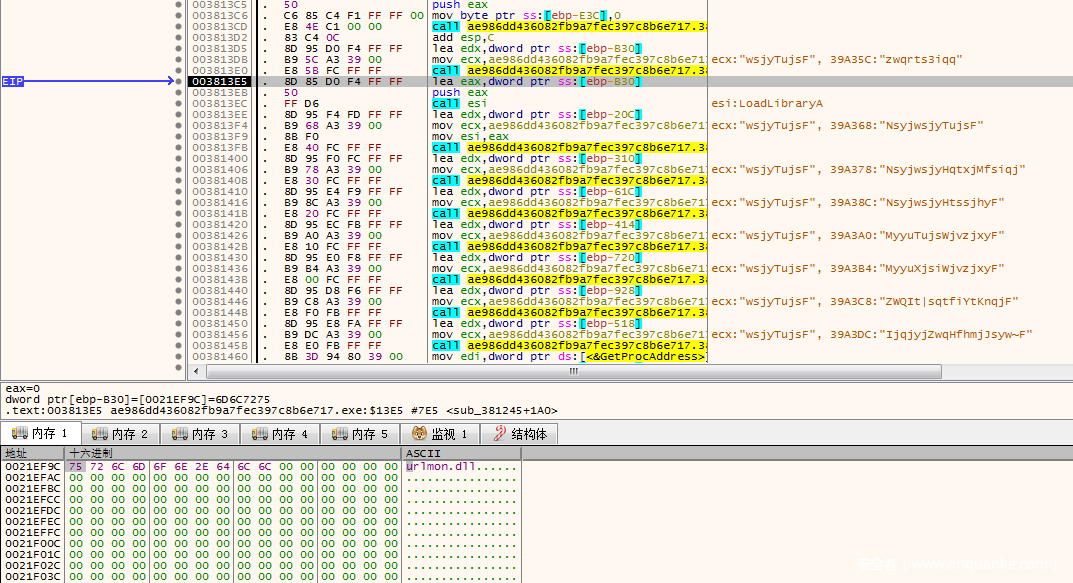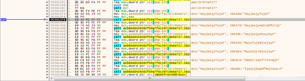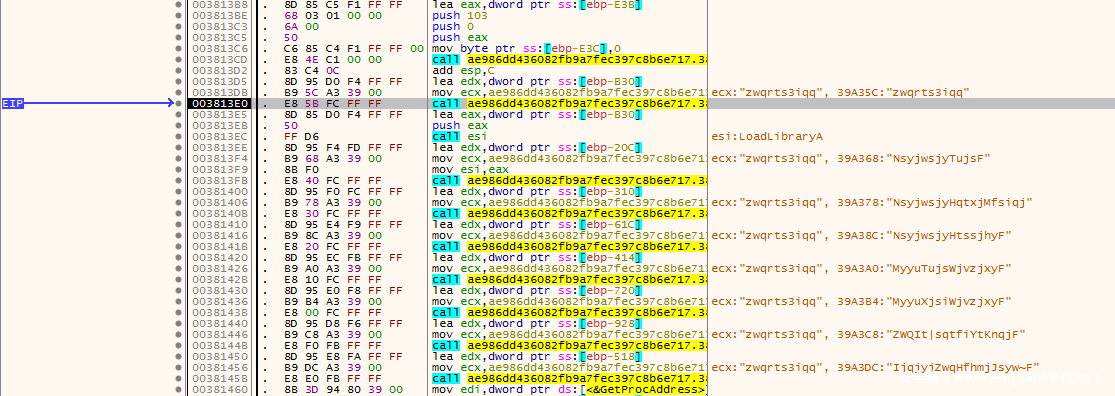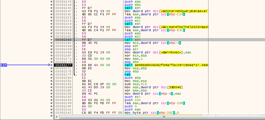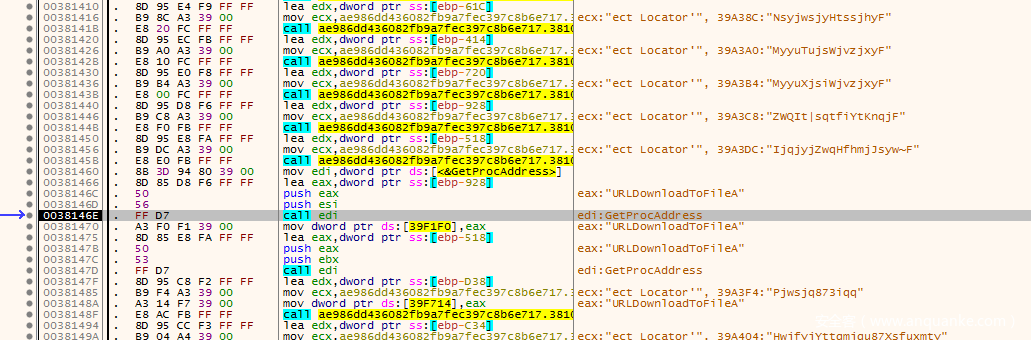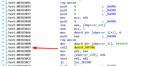 我们在IDA中按G跳转到003830B7,就是我们刚才看到的call dwrd_xxxx