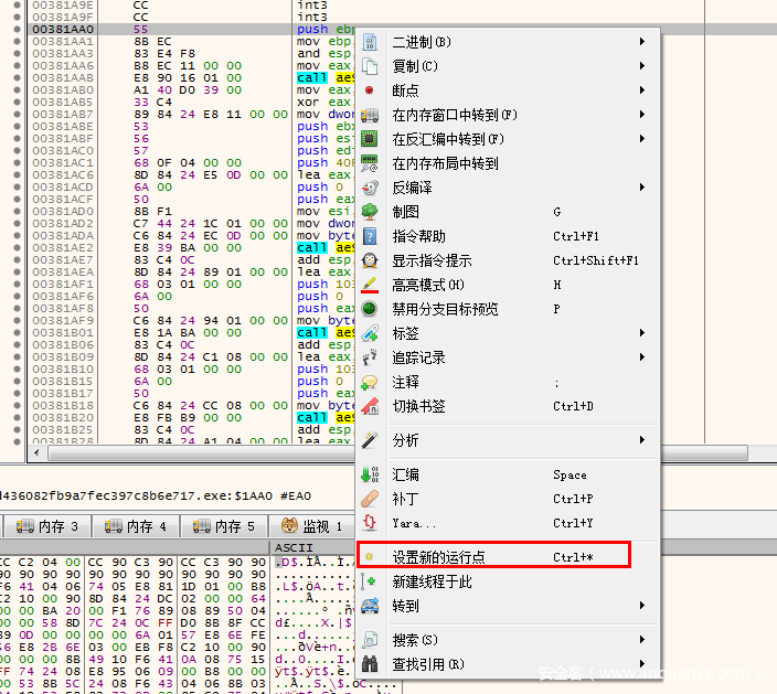 我们回到sub_382F30的调用处,先通过调试器在此上设置断点,看看参数到底是什么。