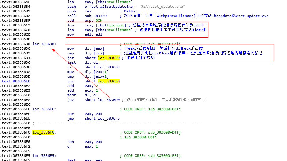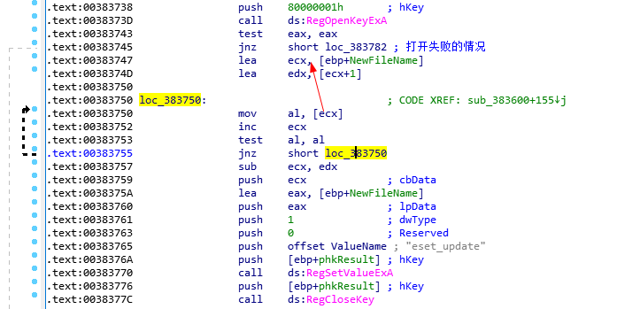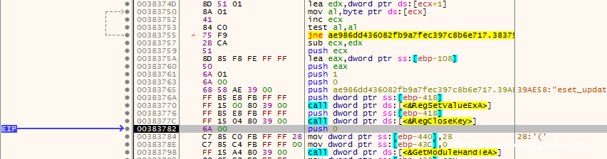 - 样本会将自身复制到%appdata%路径下并且重命名为eset_update.exe