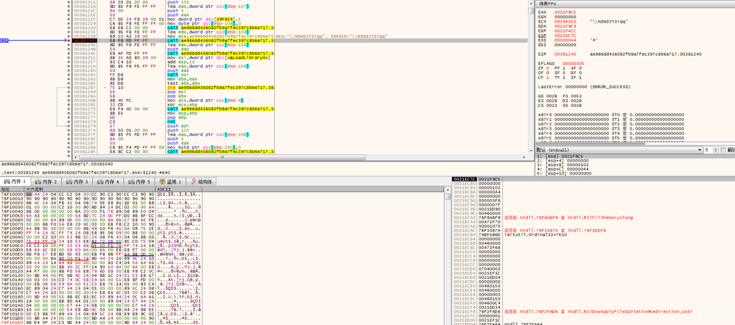我们在IDA中对样本进行概要的标注之后,即可通过调试器对标注的地方进行快速的验证。