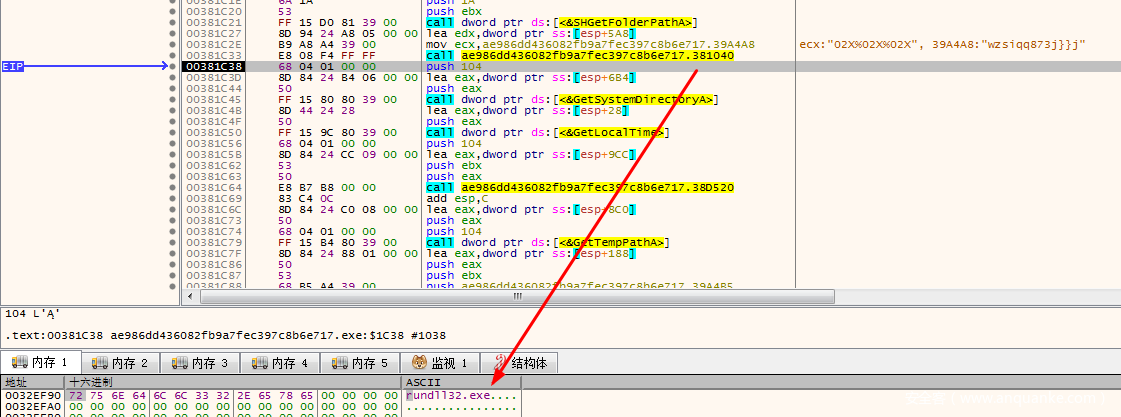 这里解密了一个rundll32.exe 说明程序后面可能会下载一个dll文件到本地,然后通过rundll32.exe调用启动dll。