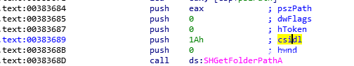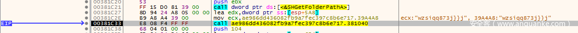 然后通过SHGetFolderPathA获取环境变量路径,并且对wzsiqq873j}j进行解密。