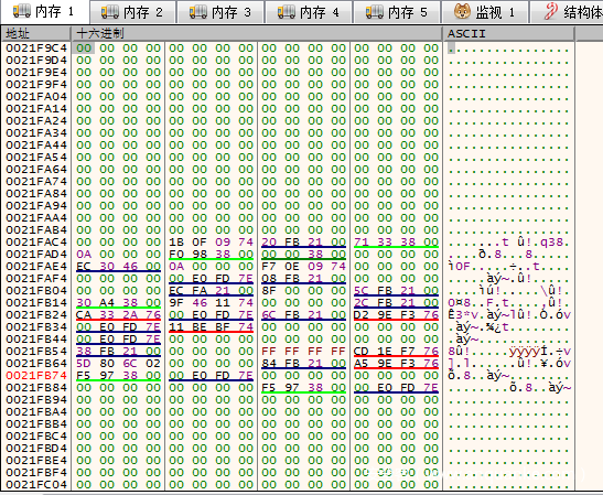 通过调试器我们可以看到,此时eax指向0252F7DC,是一片空内存。