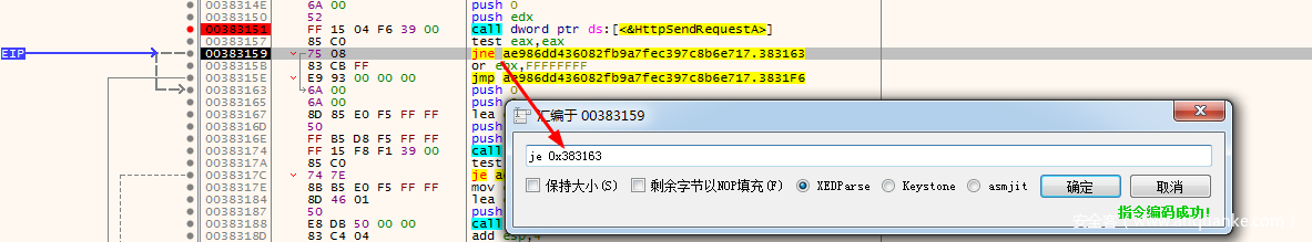 如果发送失败,则会通过jmp跳转到最后关闭网络请求,退出函数。