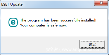 该对话框告诉用户,啊我是杀毒软件ESET的更新程序,我现在更新完成了,你的电脑安全啦。