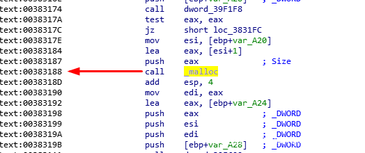 我们在IDA里面看一下00383188所对应的的call是什么内容
