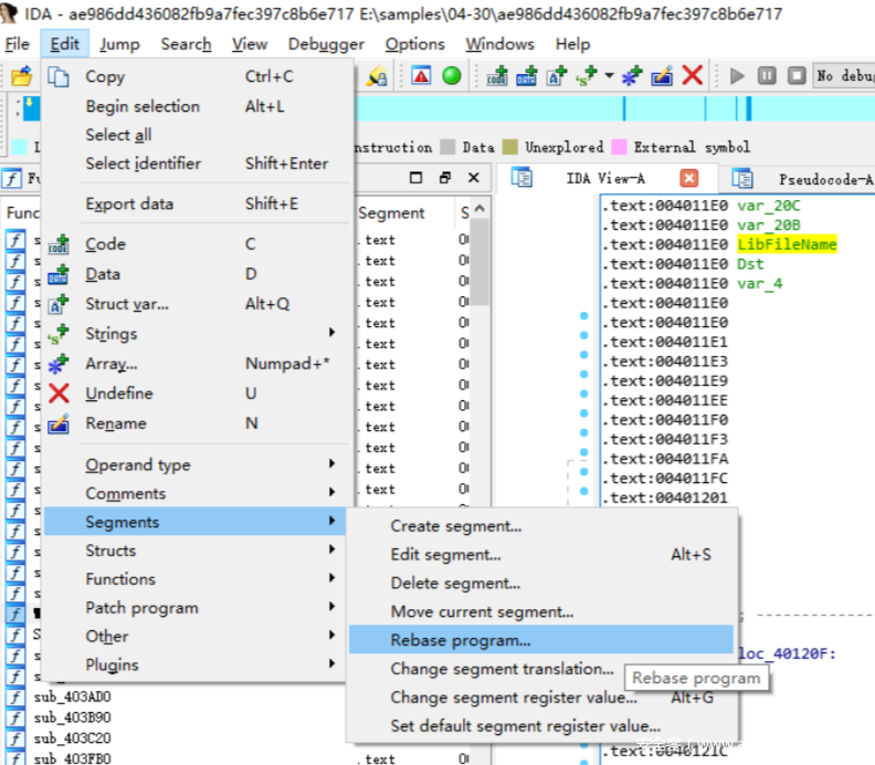 我们在IDA中选择 Edit->Segments->Rebase Program
