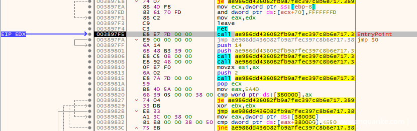 然后EIP就会设置到381AA0处了