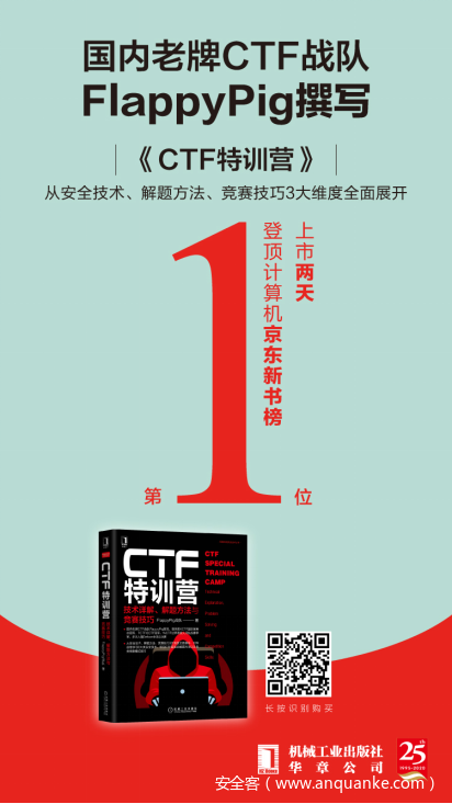 这次安全客免费为大家提供了8本《CTF特训营:技术详解、解题方法与竞赛技巧》!有以下三种获取方式,大家自取哦~
