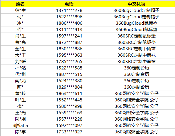 恭喜以下小伙伴获得季刊精美礼品一份, 请在7月31日18:30前,加入安全客活动3群:830462644,联系管理员@安全客发送邮寄地址吧~
